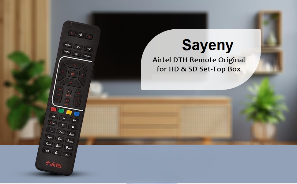 The Airtel DTH Remote is designed for both HD and SD set-top boxes, offering a sleek and compact design that integrates seamlessly into your home