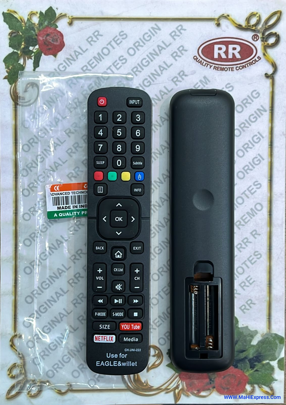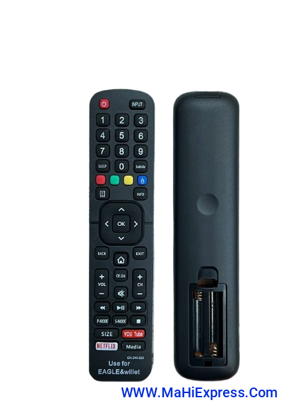 Remote Compatible for Eagle & Willett LED TV Remote Control With Youtube Button (Your Old Remote Must be Exactly Same).This remote is a perfect replacement for your TV remote. Equipped with different buttons and controls, the remote lets you adjust the settings of your TV. The remote has a compact and light weight design that makes it easy to manage. It has an ergonomic handle that provides you a precise grip. Imported Generic Product. This remote is a perfect replacement for your TV remote. Before Using, Please Insert New Batteries.