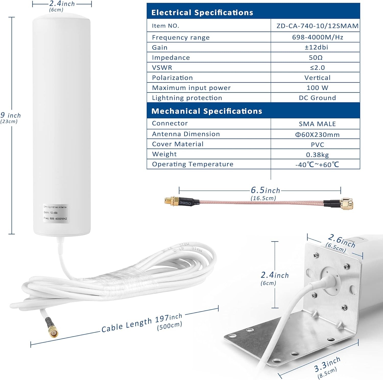 India High Gain 10-12dBi External SMA Male/Dual SMA Male 3G 4G 5G LTE Omni Directional Outdoor Antenna for Mobile Cell Phone Cellular 4G/LTE/5G Router Modem Gateway(698-4000 MHz)