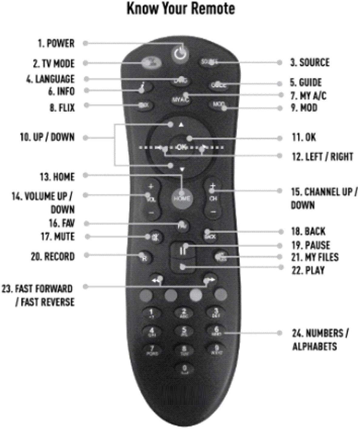 The Dish tv Set top Box Remote is designed for both HD and SD set-top boxes, offering a sleek and compact design that integrates seamlessly into your home