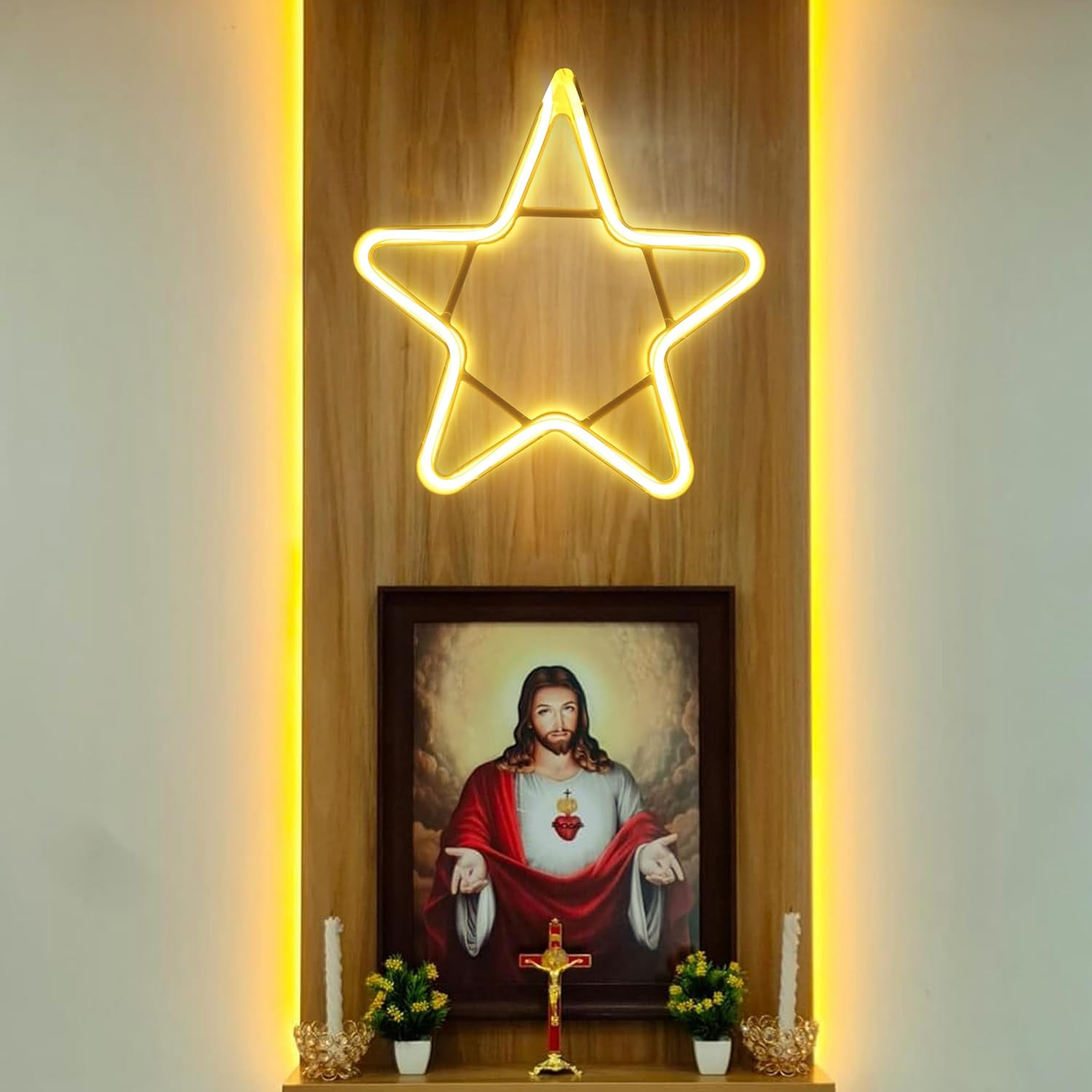 Sayeny Star Neon Sign - LED Neon Strip Rope Lights for Home Decor | IP65 Waterproof Neon Signs for Diwali Decoration,Christmas Decoration,Birthday Decor, Indoor Outdoor | Electric AC Plug (Warm White)