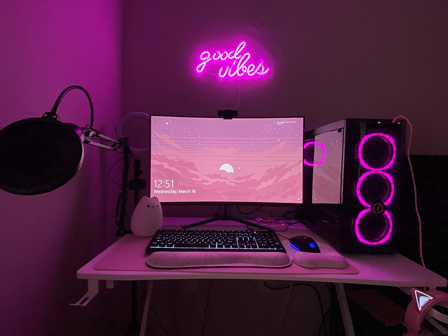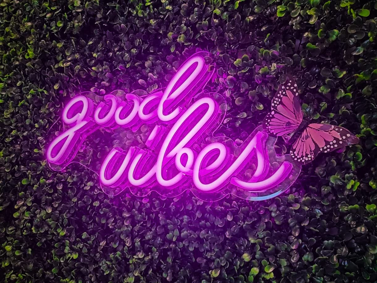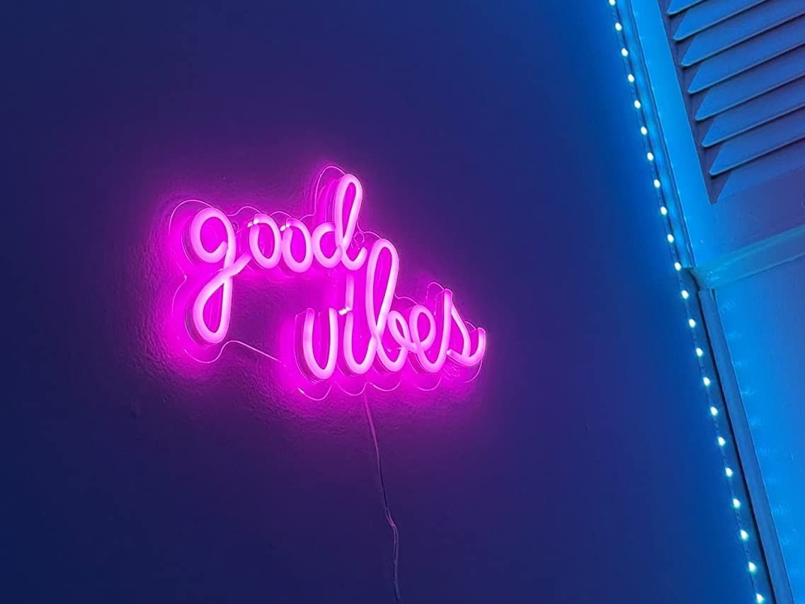 Sayeny Good Vibes LED Neon Signs Light LED Art Decorative Sign - Wall Decor/Table Decor, Home Decor for Wedding Party Kids Room Living Room House Bar Pub Hotel Beach (Pink)