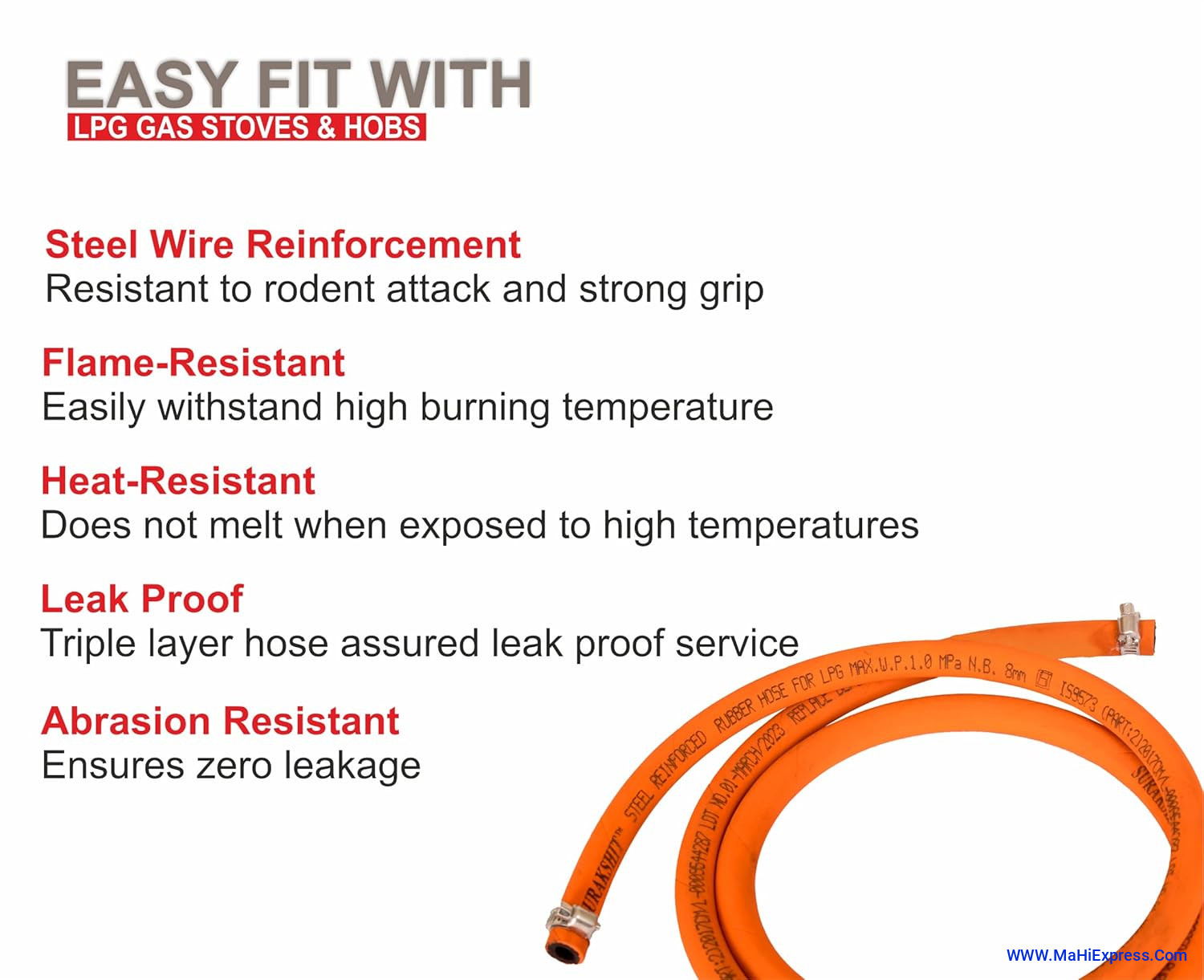 Indian Gas Steel Reinforced LPG Gas Hose Pipe+Regulator+Lightar+2pcs Clip lpg suraksha hose pipe 1.5 meter Hose Pipe (1.5 m)
