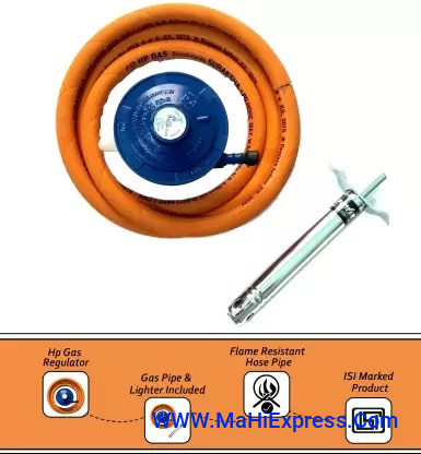 HP Gas Steel Reinforced LPG Gas Hose Pipe+Regulator+Lightar lpg suraksha hose pipe 1.5 meter Hose Pipe (1.5 m)