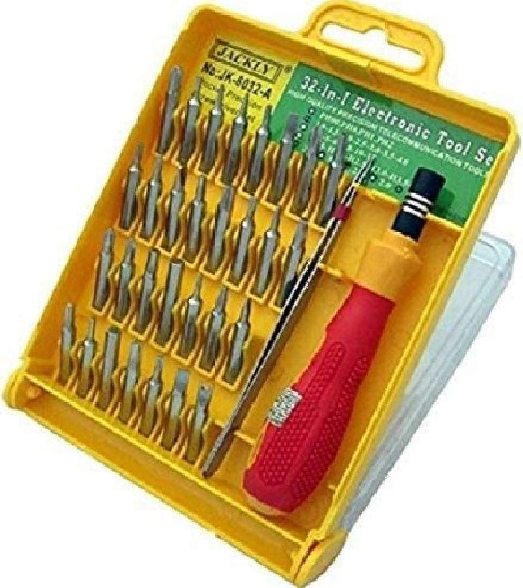Compact case stores all parts - Comes with a plastic holder to place the screwdriver bits in it - Magnetic bits are easy and tight to adsorb into the handle - Handle with rubber wrap for comfortable grip - Comes with a plastic storage box - Compact storage design, convenient to place and carry - Multi-functional Pocket Screwdriver Set - Able to open Mobile phones, Computers, PDA housings, PSPs, NDS, MP3 players, etc - This tool set kit has everything you need to change out any face plate Specifications : - Handle length: 10.2 cm - Blade length: 2.8 cm - Size of storage box: approx. 5.5 cm in diameter, 12 cm in height - Including 1 handle, 30 blades as follow: 9 Heads T4, T5, T6, T7, T8, T9, T10, T15, T20 4 Heads PH000, PH00, PH0, PH1 (Most common cross heads) 7 Heads Straight 1.0, 1.5, 2.0, 2.5, 3.0, 3.5, 4.0 (Most common Straight heads) 8 Heads Hex 0.7, 0.9, 1.3, 1.5, 2.0, 2.5, 3.0, 4.0 (model, bicycle, Engine, Guns) 2 Heads Philip Z0, PZ1 Every Piece Includes: - 1 x Plastic Handle (Red/Black) - 30 x Screwdriver Bits - Plastic case package Insert Bits Detail: +: PH000, PH00, PH0, PH1 -: 1.5mm, 2.0mm, 2.5mm, 3.0mm ?: H1.3mm, H1.5mm, H2.0mm, H3.0mm, H4.0mm ?: T3, T4, T5, T6, T7, T8, T9, T10, T15, T20 ?: 3.0 Y: 3.0 ?: 1.5, 2.0 U: 2.6 This 32-piece precision multi-driver set is an ideal tool set for electronic workshops, watch repair, eyeglass repair, and hobby miniatures where fine precision is required. It contains a tweezer, a handle and 30 commonly used bits. All compactly organized in a pocket-sized carry case, this set can go anywhere you go. Keep it in the kitchen drawer, glove compartment, or pack in your luggage when you travel, you will like it. This mini screwdriver kits is for home normal appliance maintenance such as toys,camera,cellphone,game machine,watch, computer,weight scale and other electronic devices mini screwdriver kit's advantage is small,organized in one transparent box, very easy