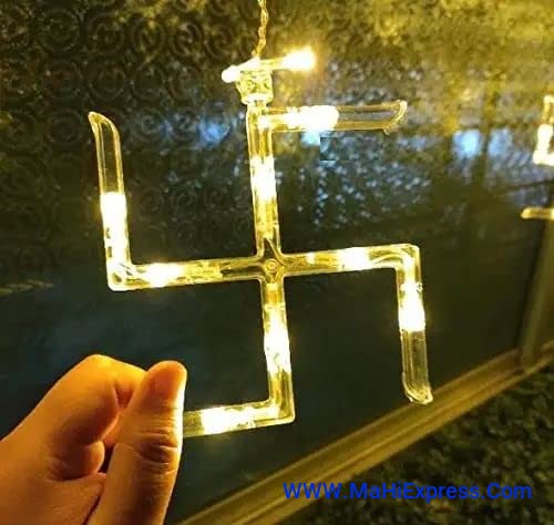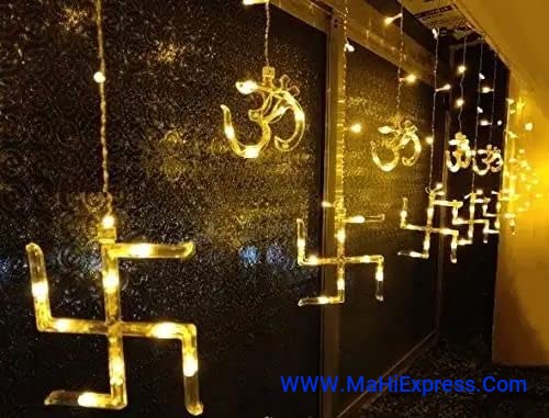 Sayeny 12 Om Swastik Curtain Warm White String Lights 6 Swastik 6 Om 114 Led 3 Meter Window Curtain Lights with 8 Flashing Modes for Indoor Outdoor Decoration (Plug-in, Warm White Pack of 1 - 6+6)