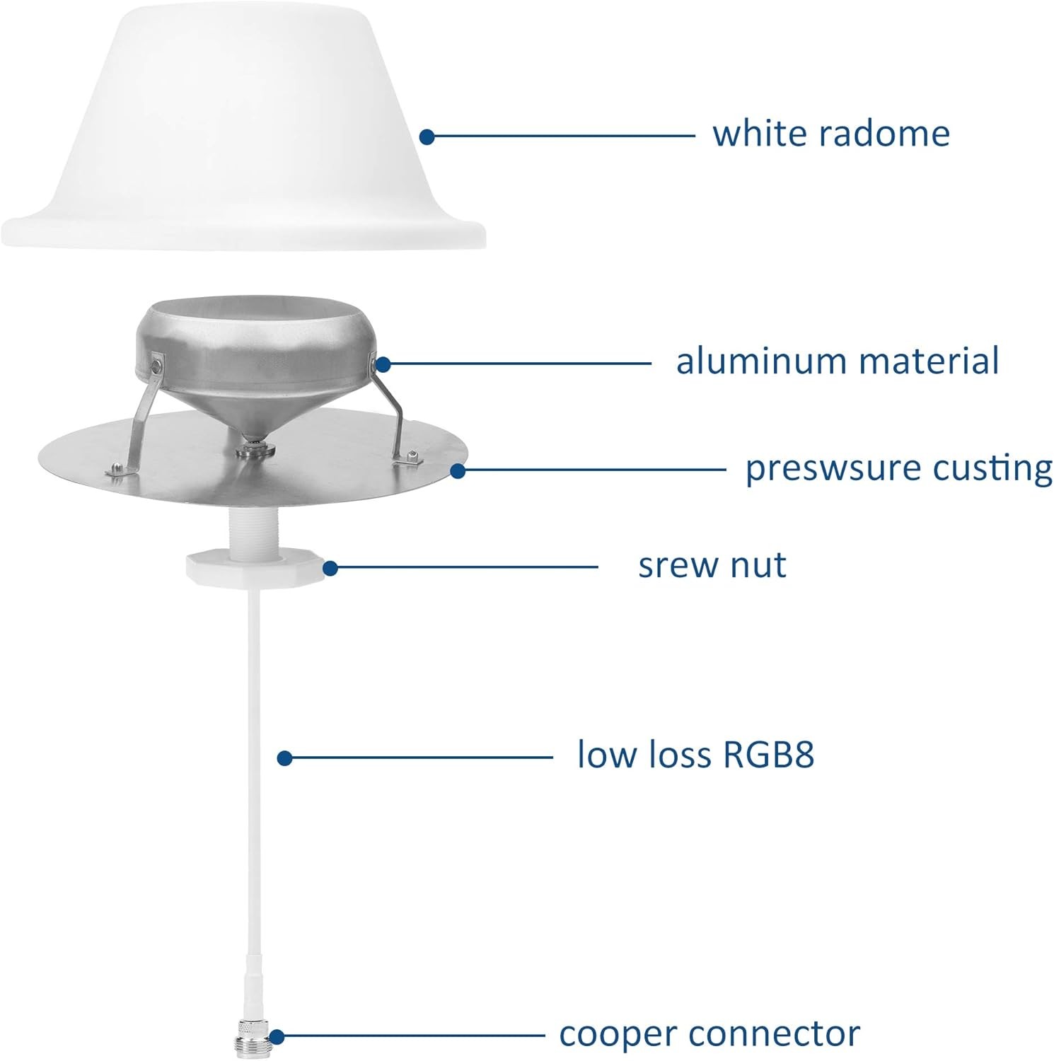 India Dome Ceiling Antenna, Omni-Directional Indoor Antenna, Wide Band Dome Antenna with N-Female Connector for Cell Phone Signal Booster - Router Gateway, White (698 to 4000 MHz)