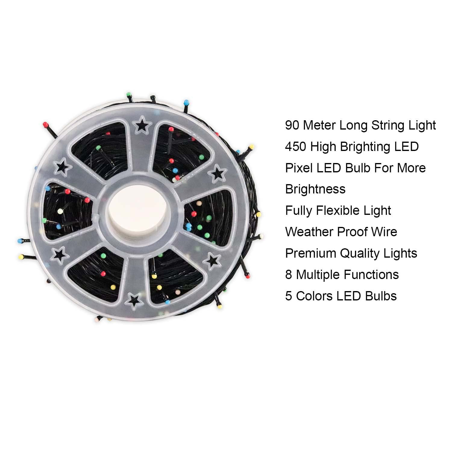 Sayeny 90 Meter Long with 450 Pixel LED Bulb Waterproof 8 Modes Fairy String Lights for Decoration (Multi Color)