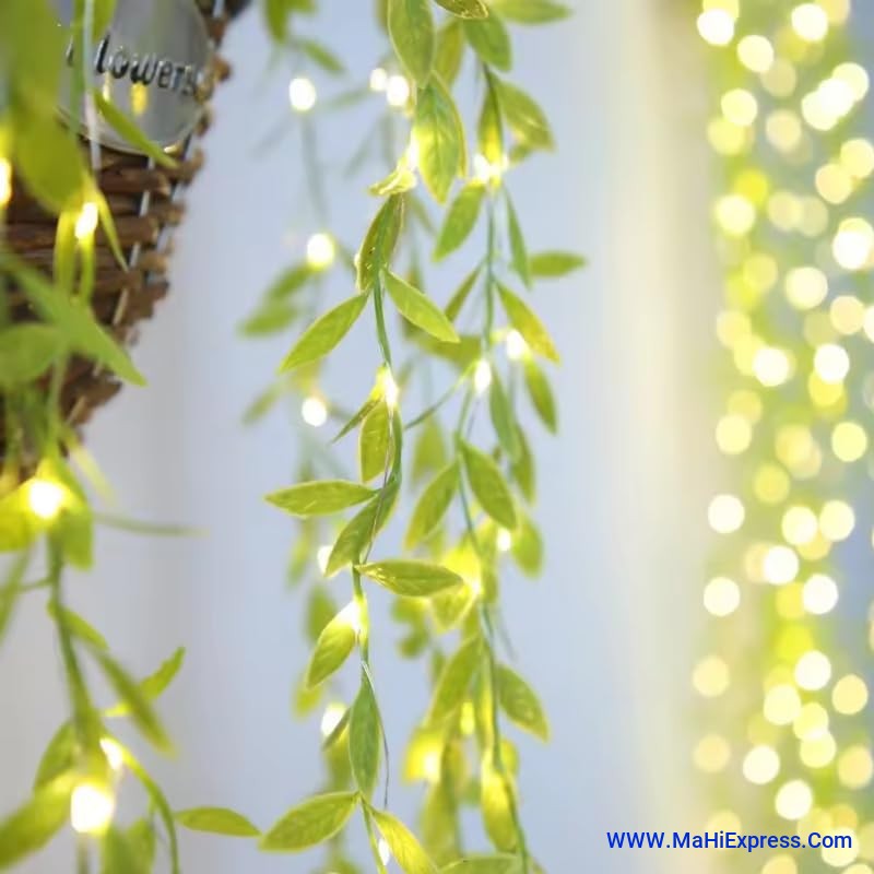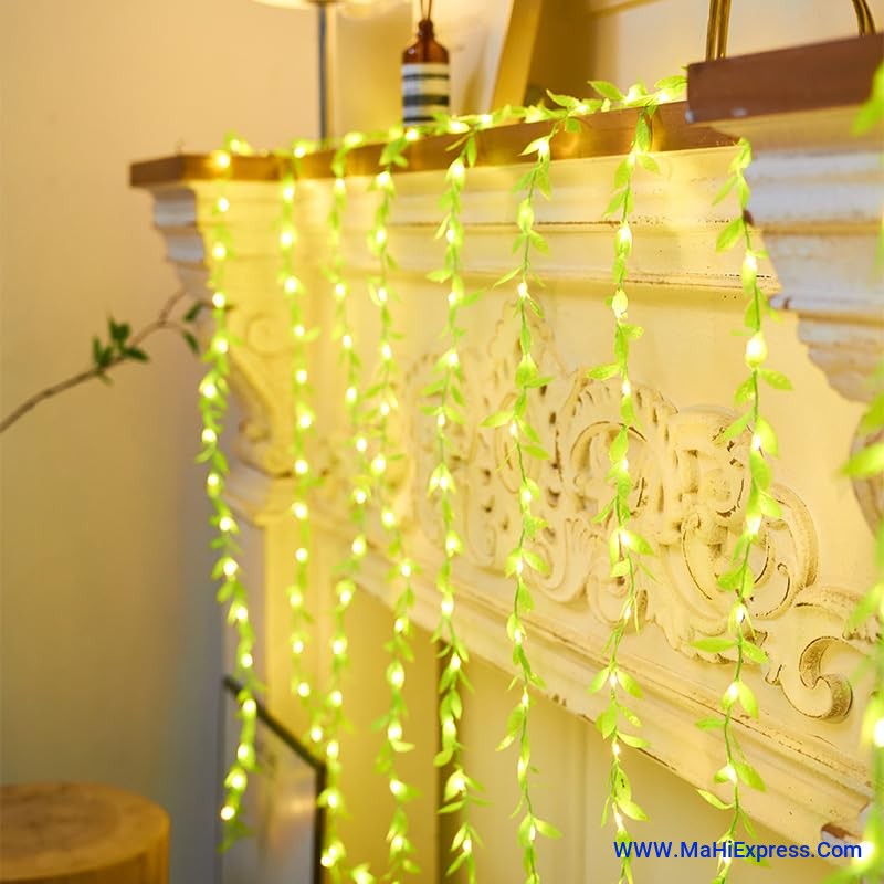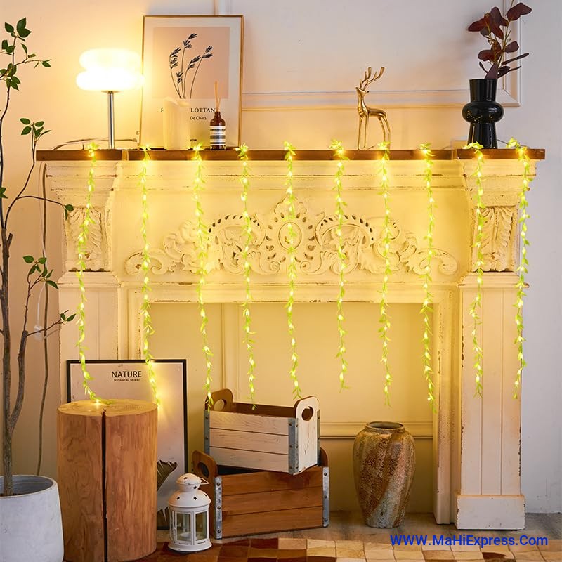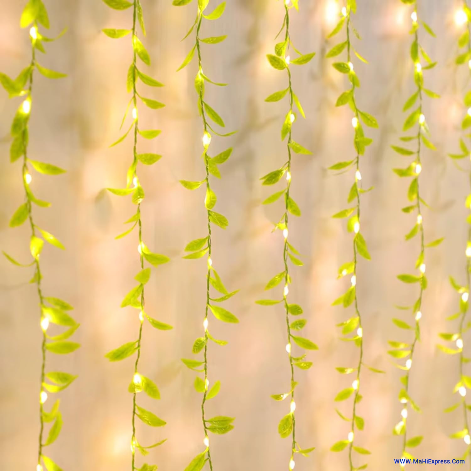 Sayeny Artificial Leaf Curtain Lights – 180 LED Warm White Fairy String Lights, 3x1m, Remote Control with 8 Lighting Modes for Home, Wedding, Party, Diwali, Christmas & Festival Decoration
