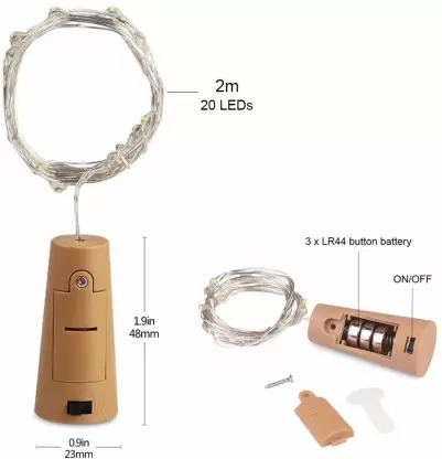 Sayeny Bottle Cork Lights for Diwali Décor (Pack of 6) 20 LED 2.3 MTR String Light, Decorative Fairy Lights, Mini Lights for Bedroom Decor, Diwali Party, Wedding Decoration, Table Decor