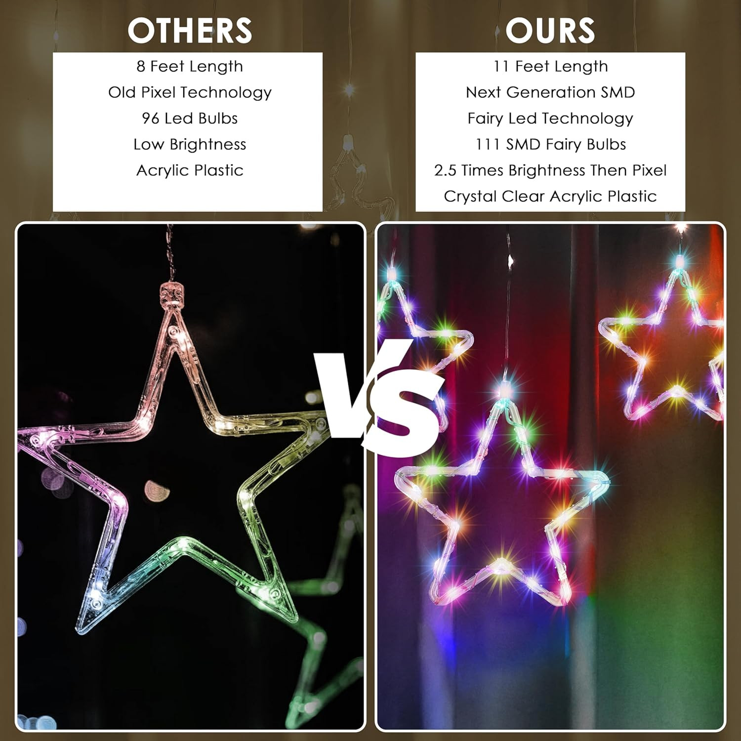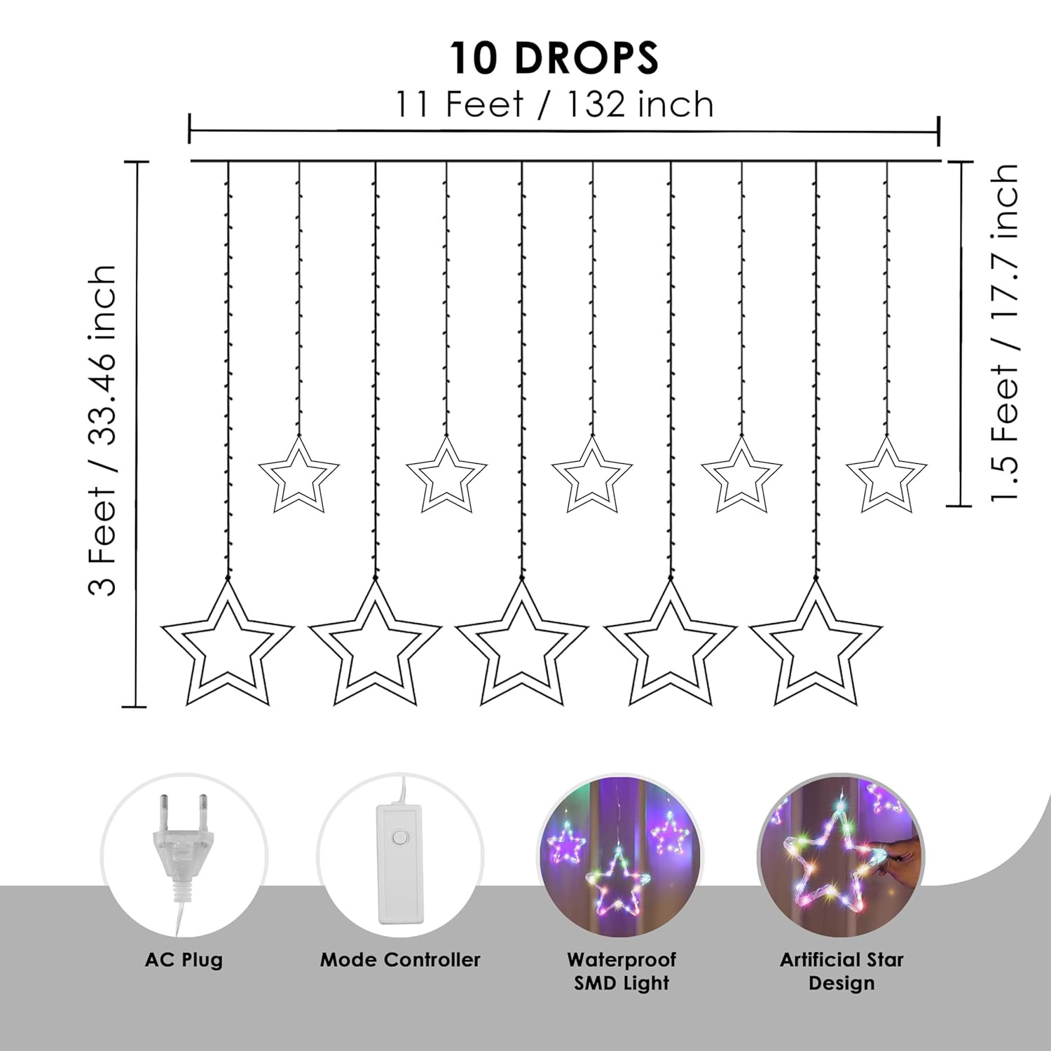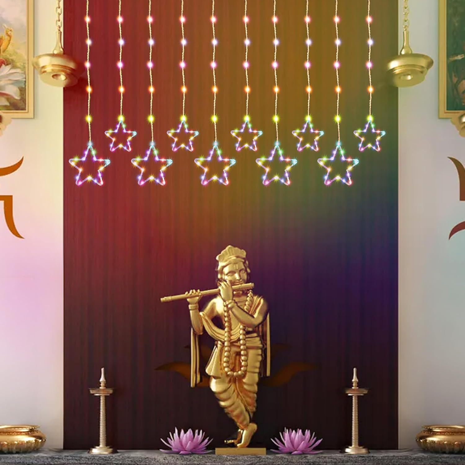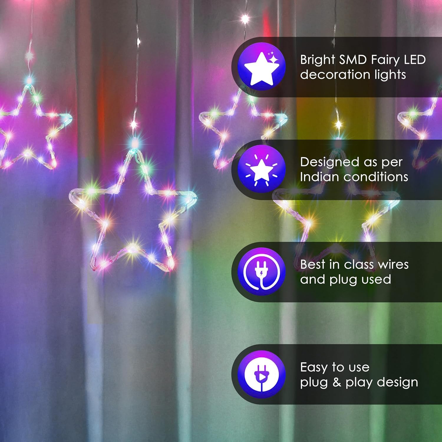 Vibrant Multicolor Star Design ?: This curtain string light features 12 stars and 138 LEDs, creating a stunning visual effect. Perfect for adding festive flair to any space, especially during Christmas and Diwali.