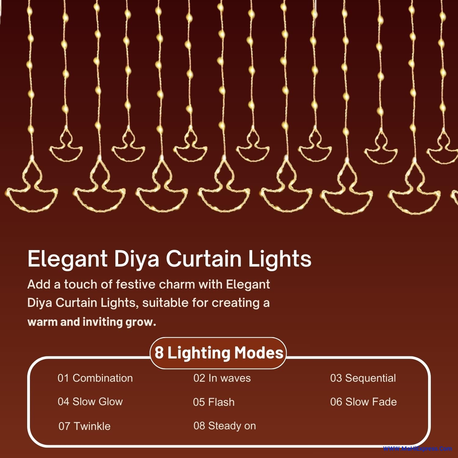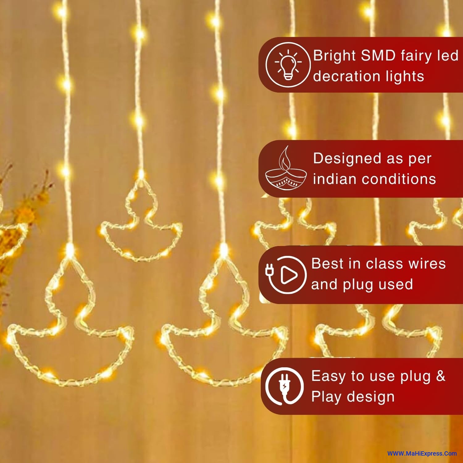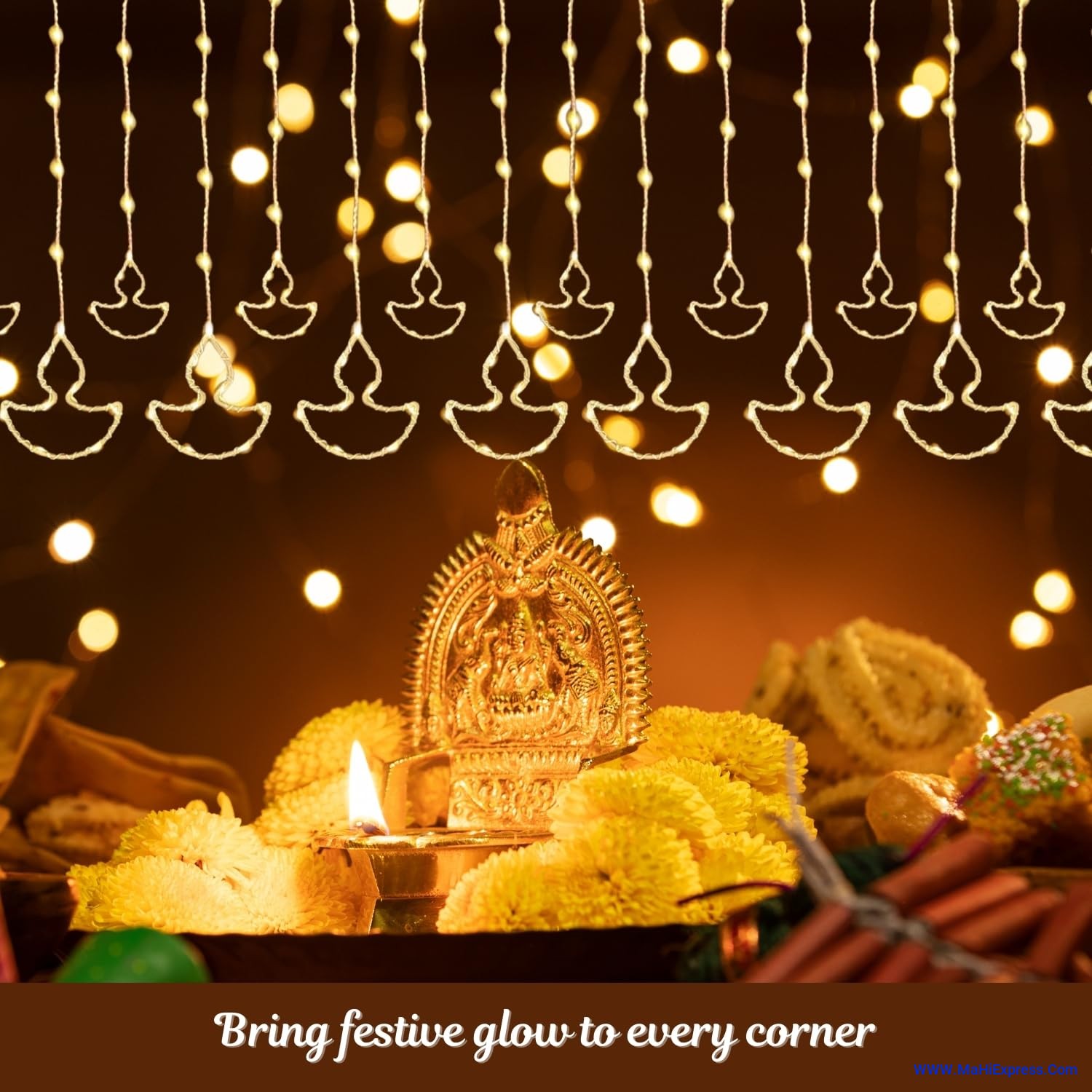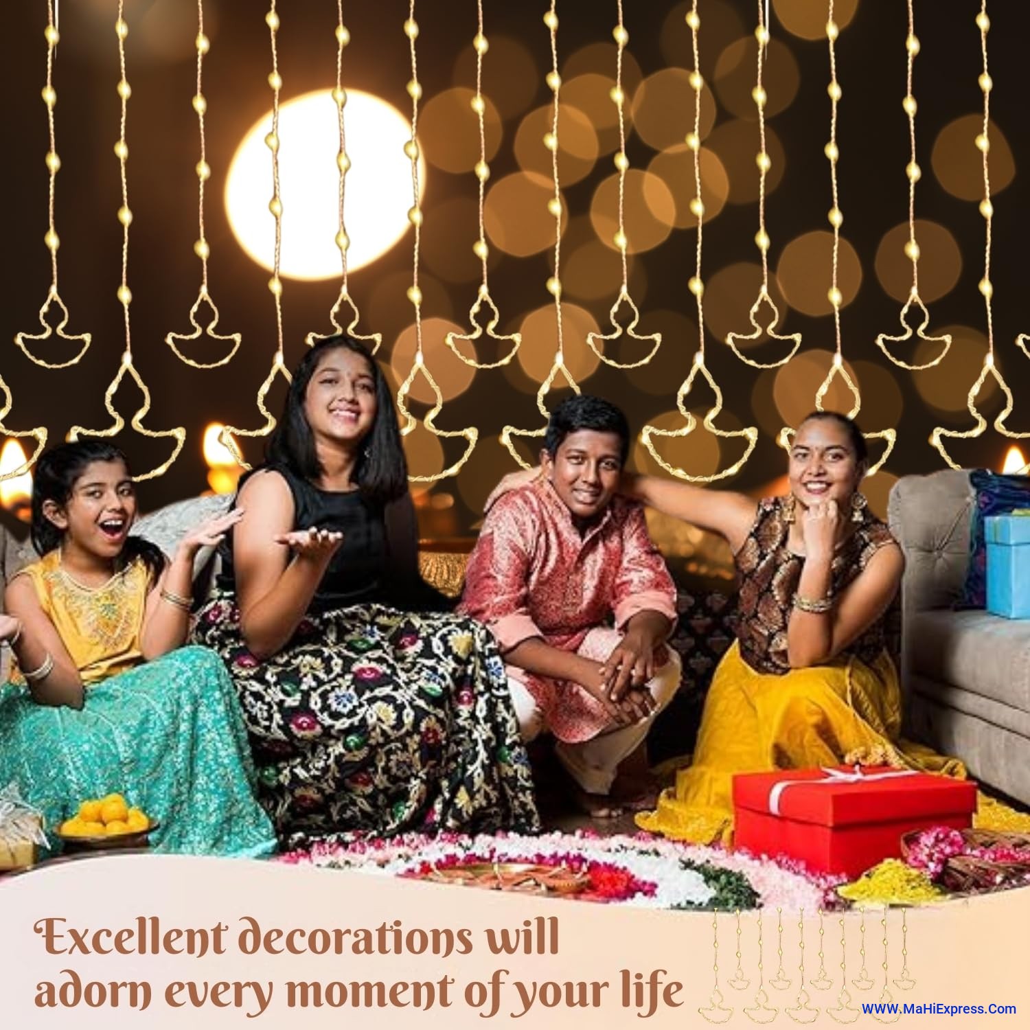 •  Unique Fairy Diya Curtain Design: Beautiful diya-shaped LEDs add a festive and elegant charm to your home décor