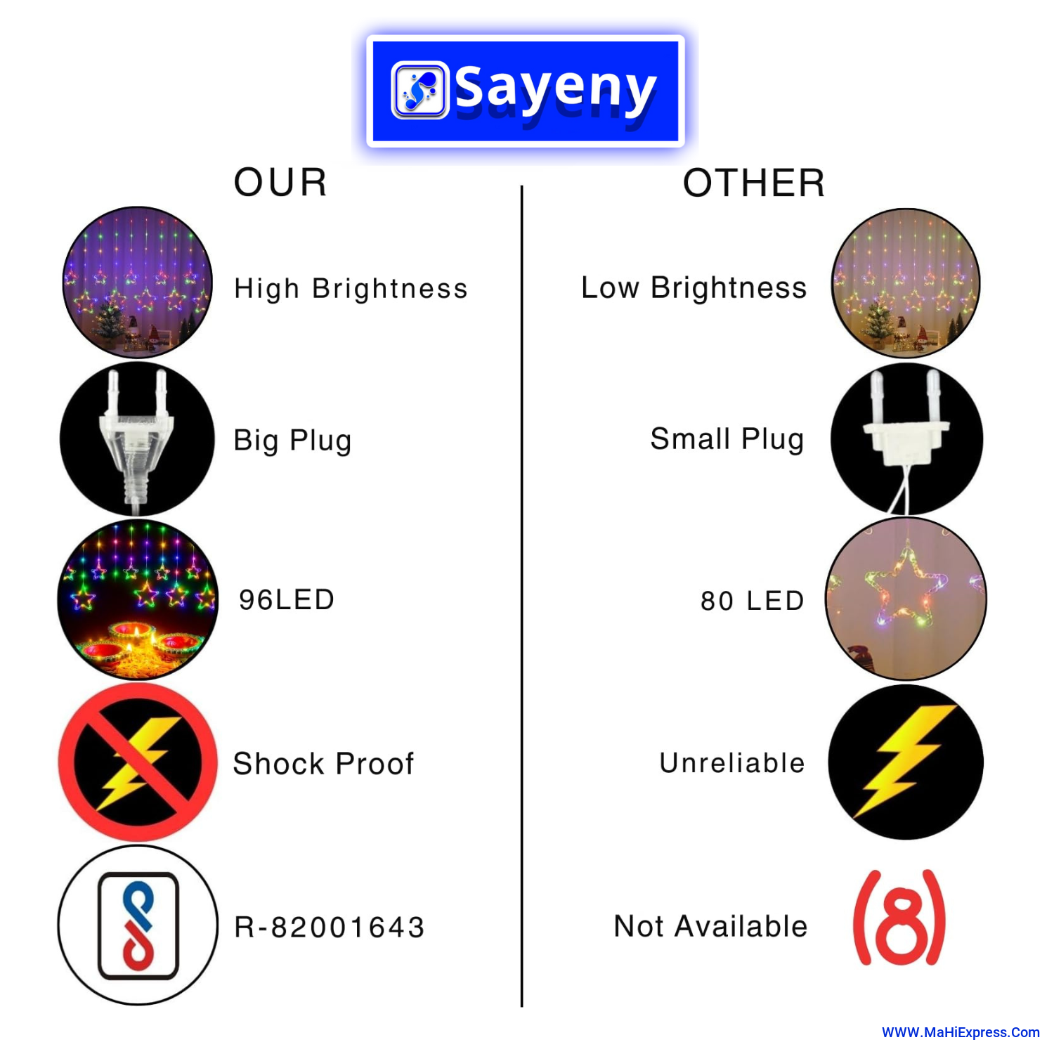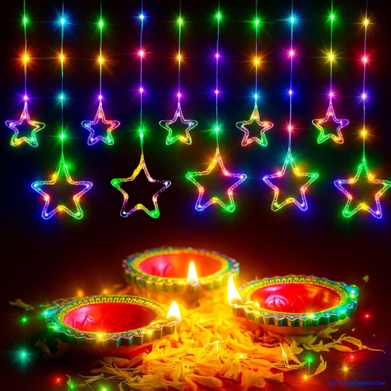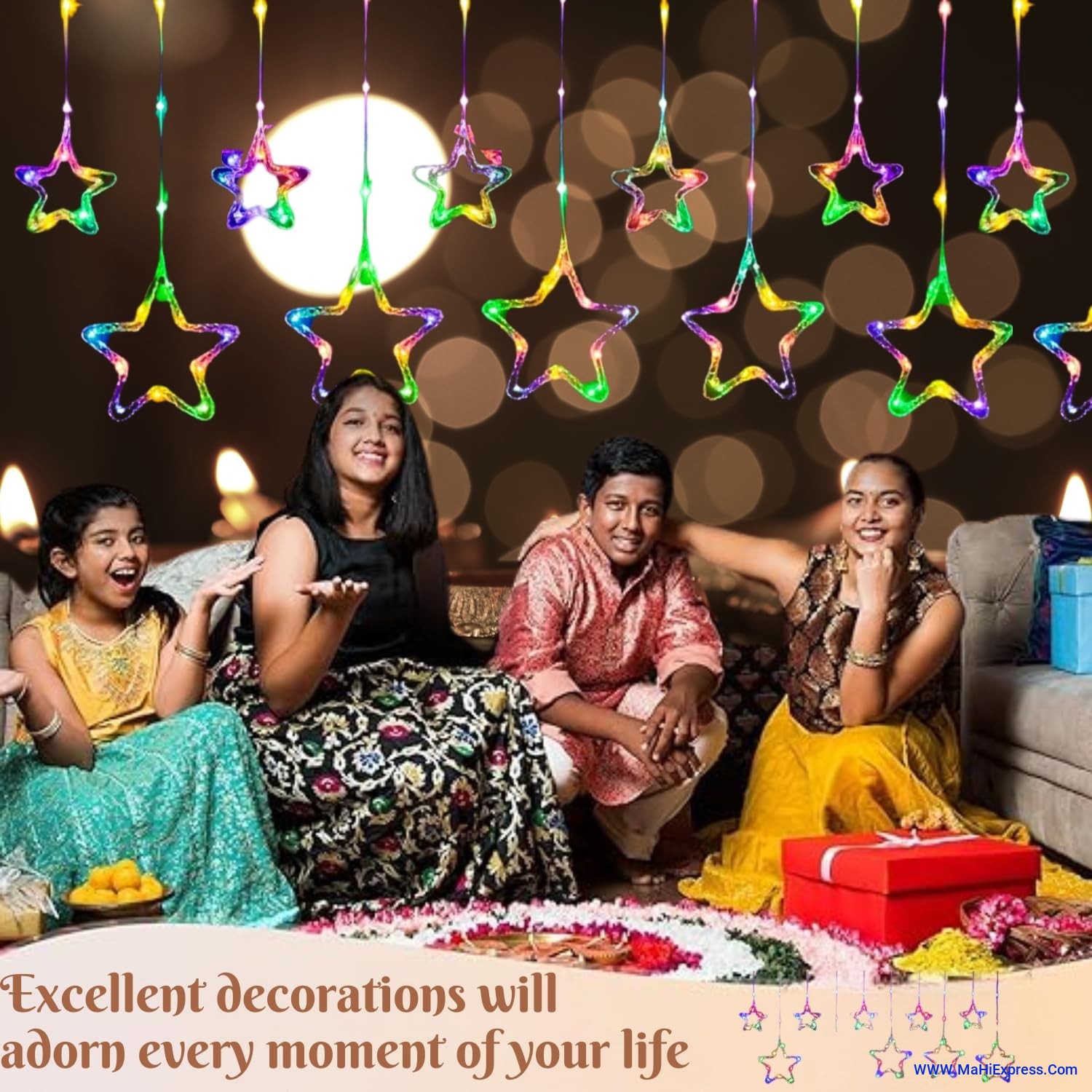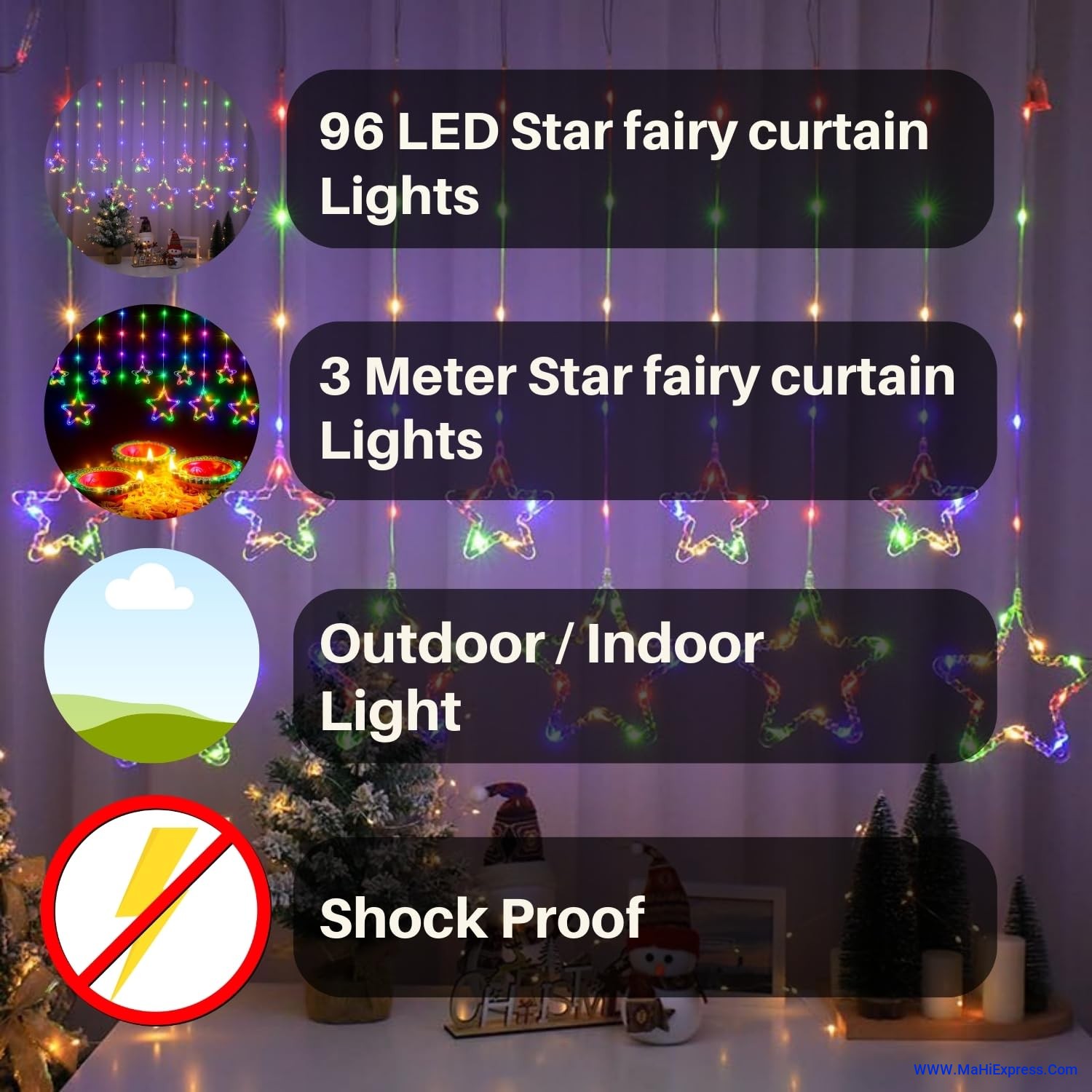 Sayeny Fairy Star Curtain String LED Lights – 3 Meter Multi-Color Plug-in Decorative Lights with 96 LEDs, 8 Modes (5+5 Star Design) for Festival, Diwali, Wedding & Home Decoration